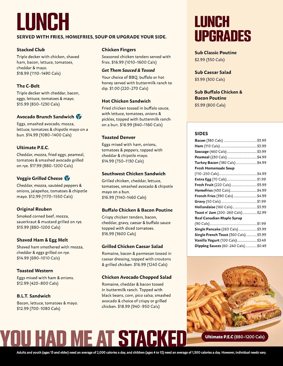 Stacked Pancake & Breakfast House in Greater Sudbury is a breakfast and lunch gem renowned for its hearty, flavorful dishes. Their menu shines with premium stacks and crepes, featuring fluffy, tall pancakes layered with rich toppings and served warm—true comfort food. Noteworthy highlights include the Hot Honey Chicken Eggs Benedict, a crowd favorite that marks a delicious comeback to classic hollandaise sauce, and the indulgent Chicken & Waffles, praised for generous portions paired with refreshing mango lemonade.